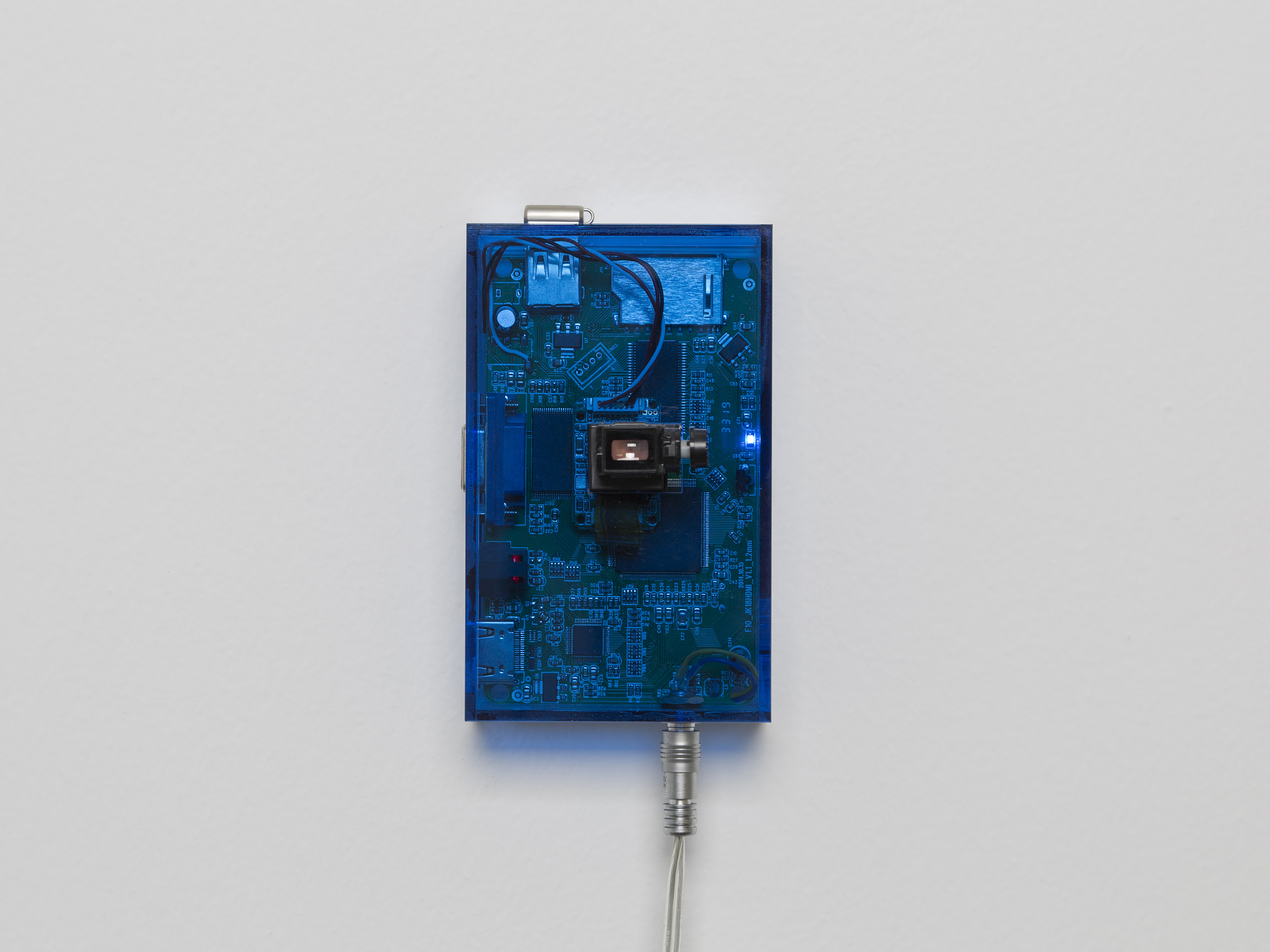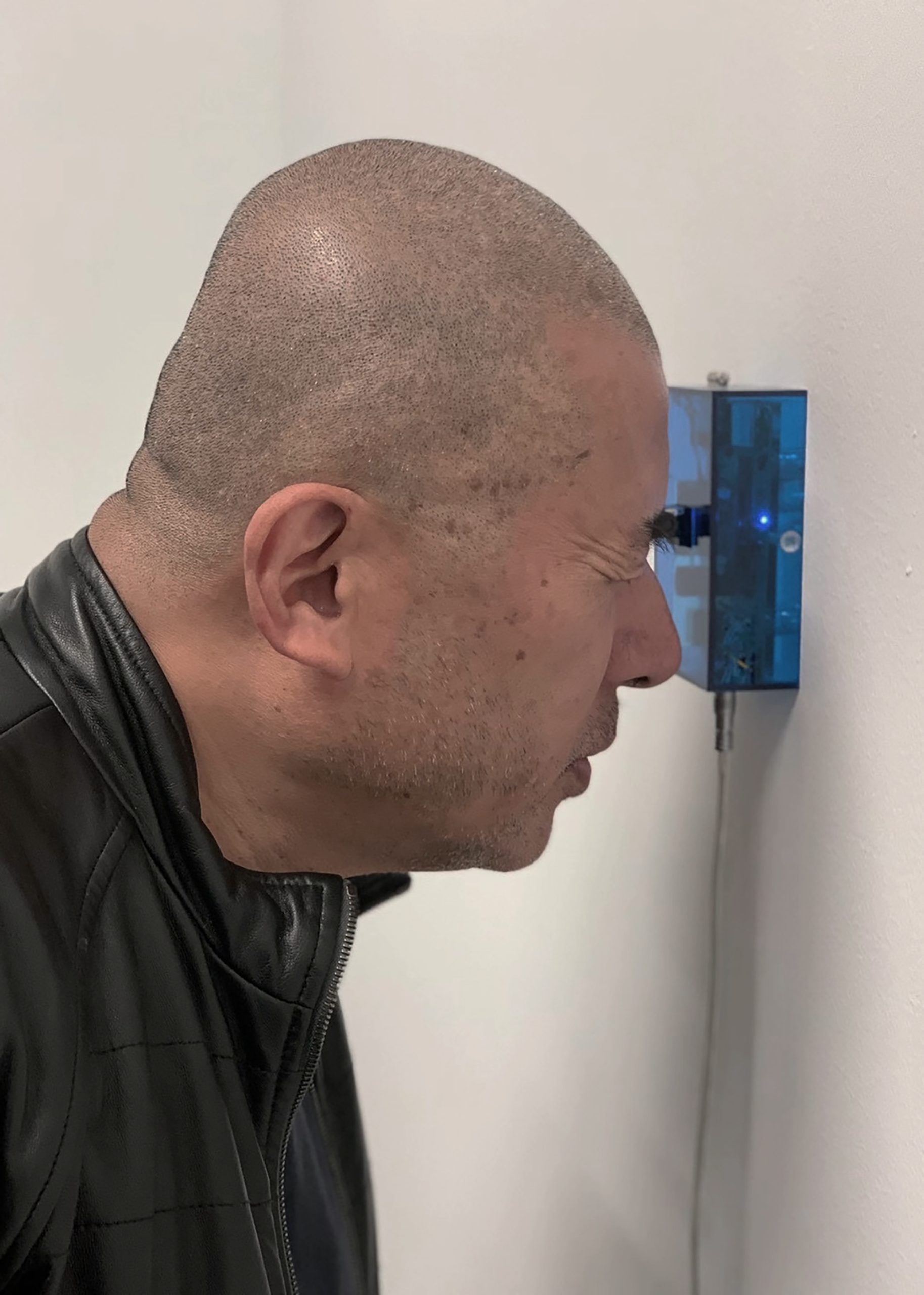When you gaze into the abyss, do you know where the abyss is gazing back at you? The artist selected several AI-generated pseudo-human portraits from thispersondoesnotexist.com, and reassembled all of them into an animation. On this website, the AI uses the eyes as the central focus of its algorithm. When the portraits are fast-played in the animation, the collective gaze of these pseudo-human faces is accentuated. This gaze is presented to viewers through a micro-screen with a magnifying lens. The combination of nonexistent pseudo-human portraits, ceaseless gazes, a miniature video viewfinder, the inscription “深渊 (Abyss)” on the acrylic shell, and viewers’ everyday internet experiences dominated by algorithms, altogether constitute the essential elements of this work.