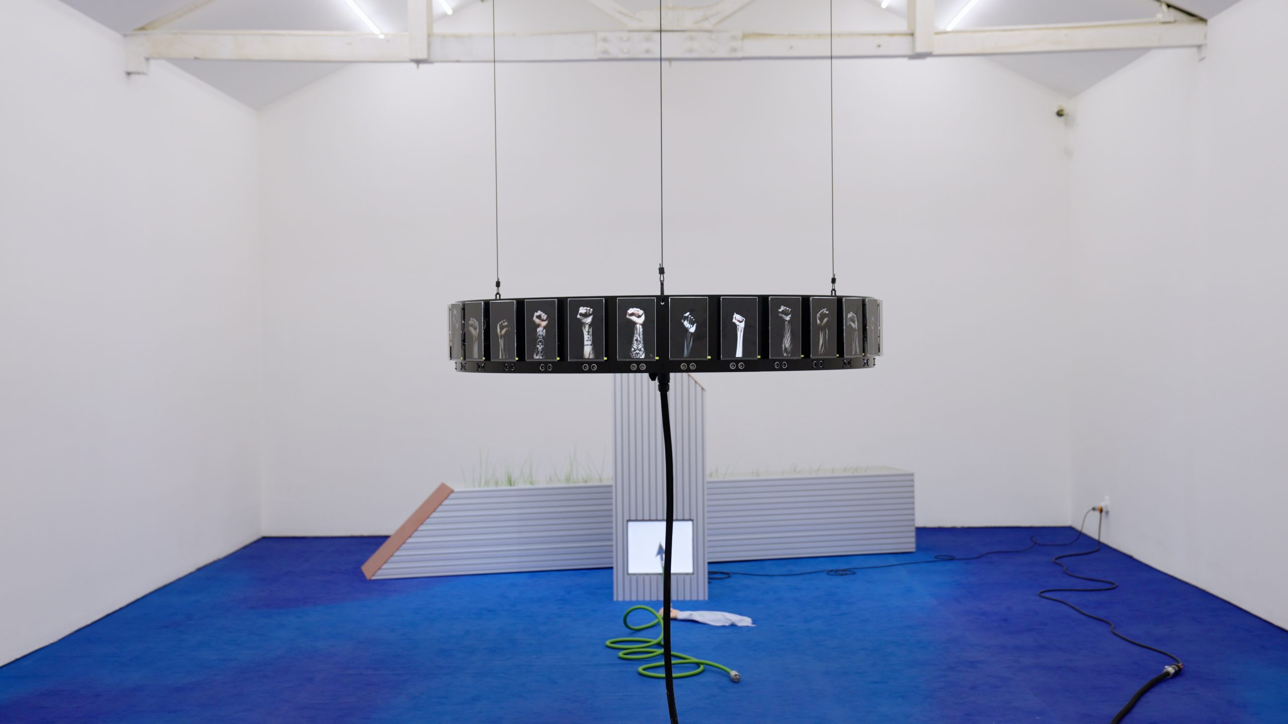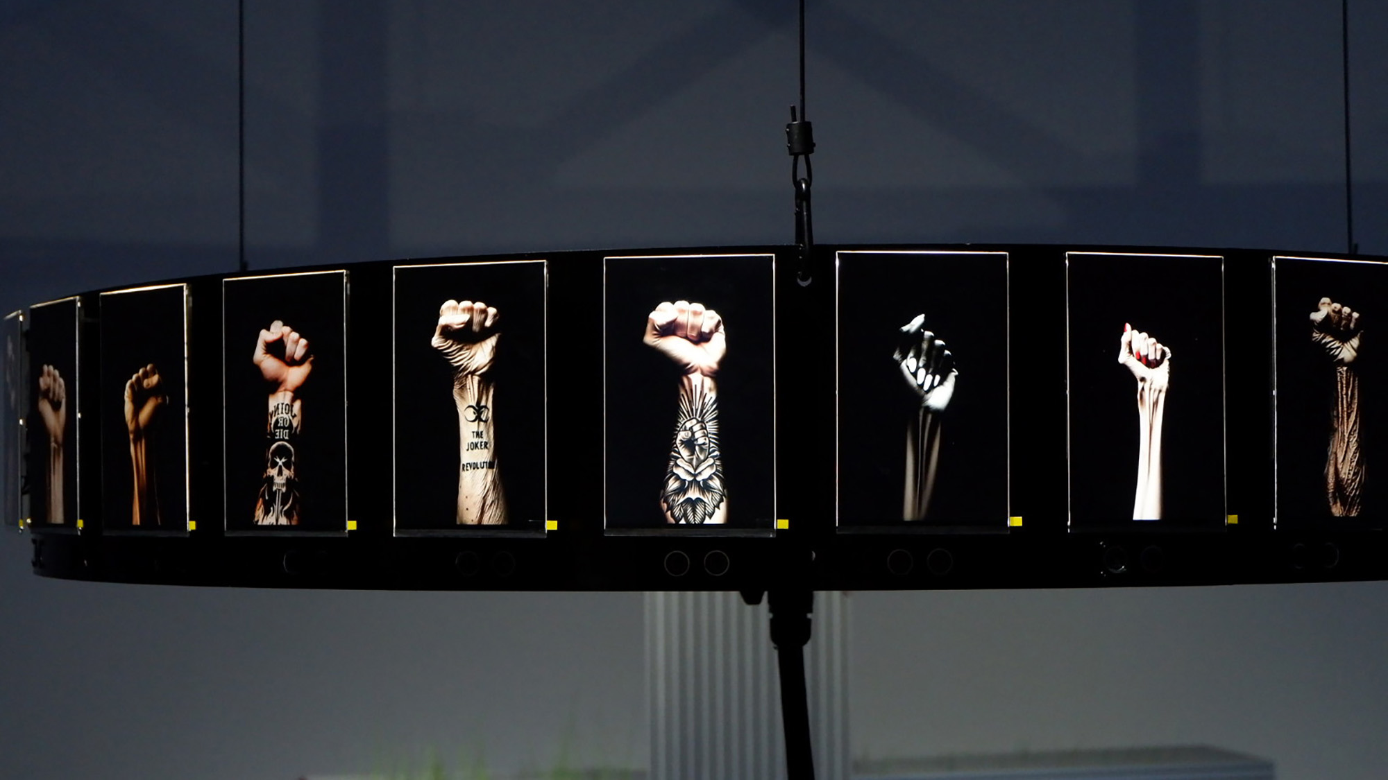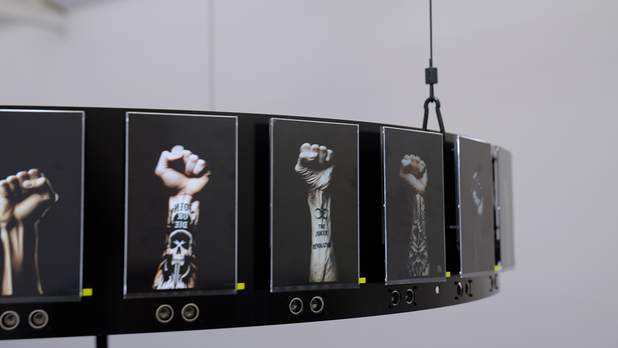 AI-generated Videos / 7.8-inch LCD Screens / Display Driver Module / Raspberry Pis / Microcontroller / Ultrasonic Sensor / Painted Stainless Steel / Power Supply