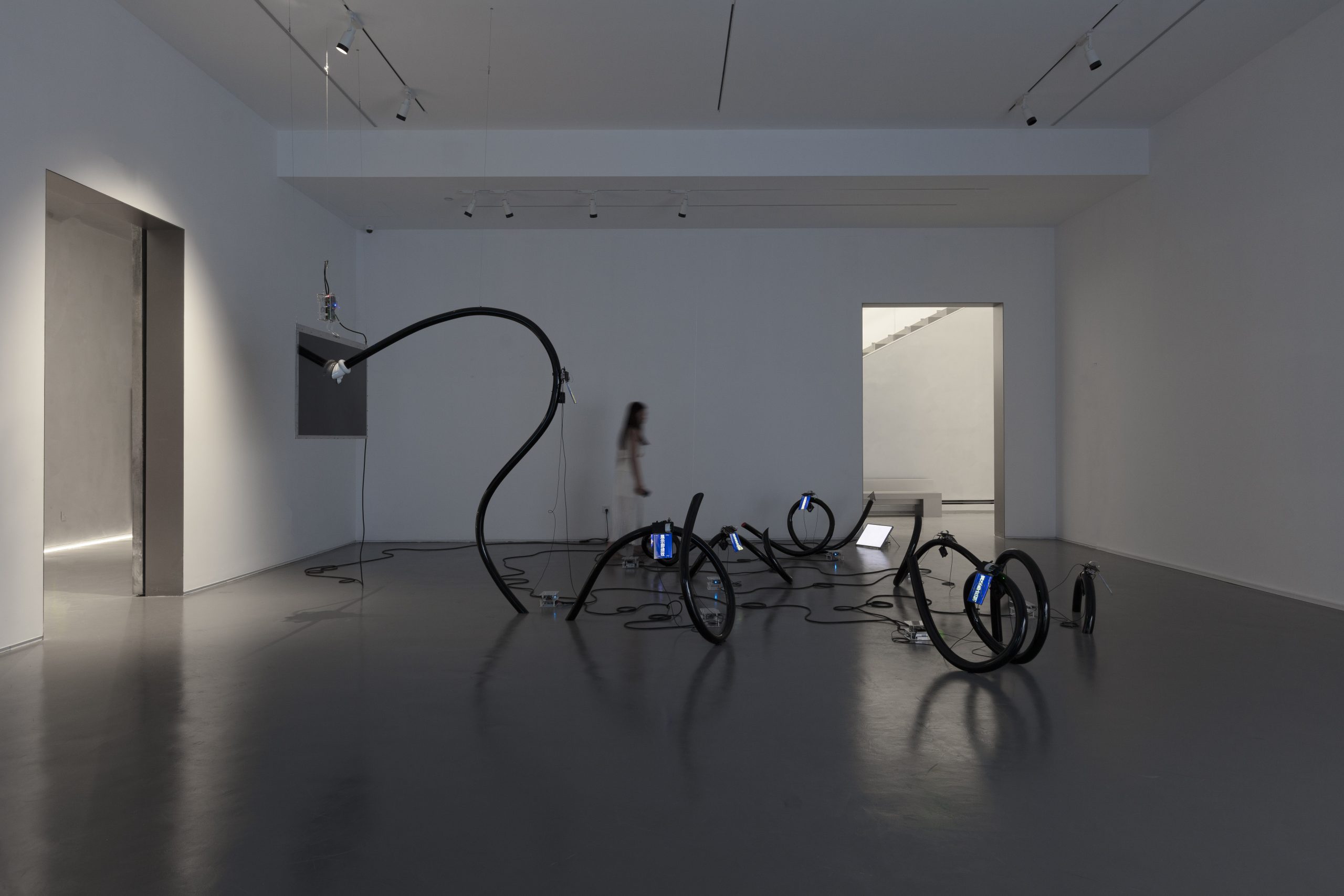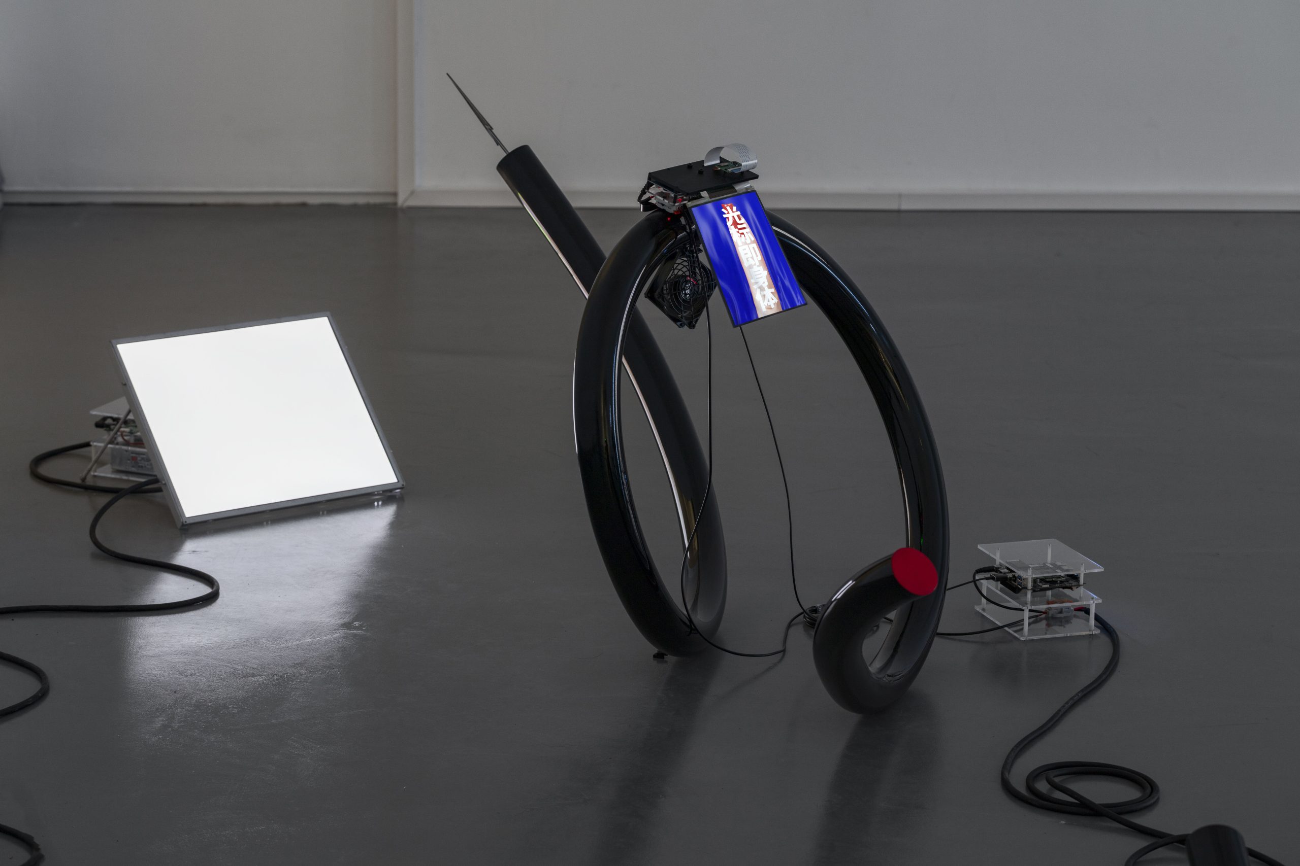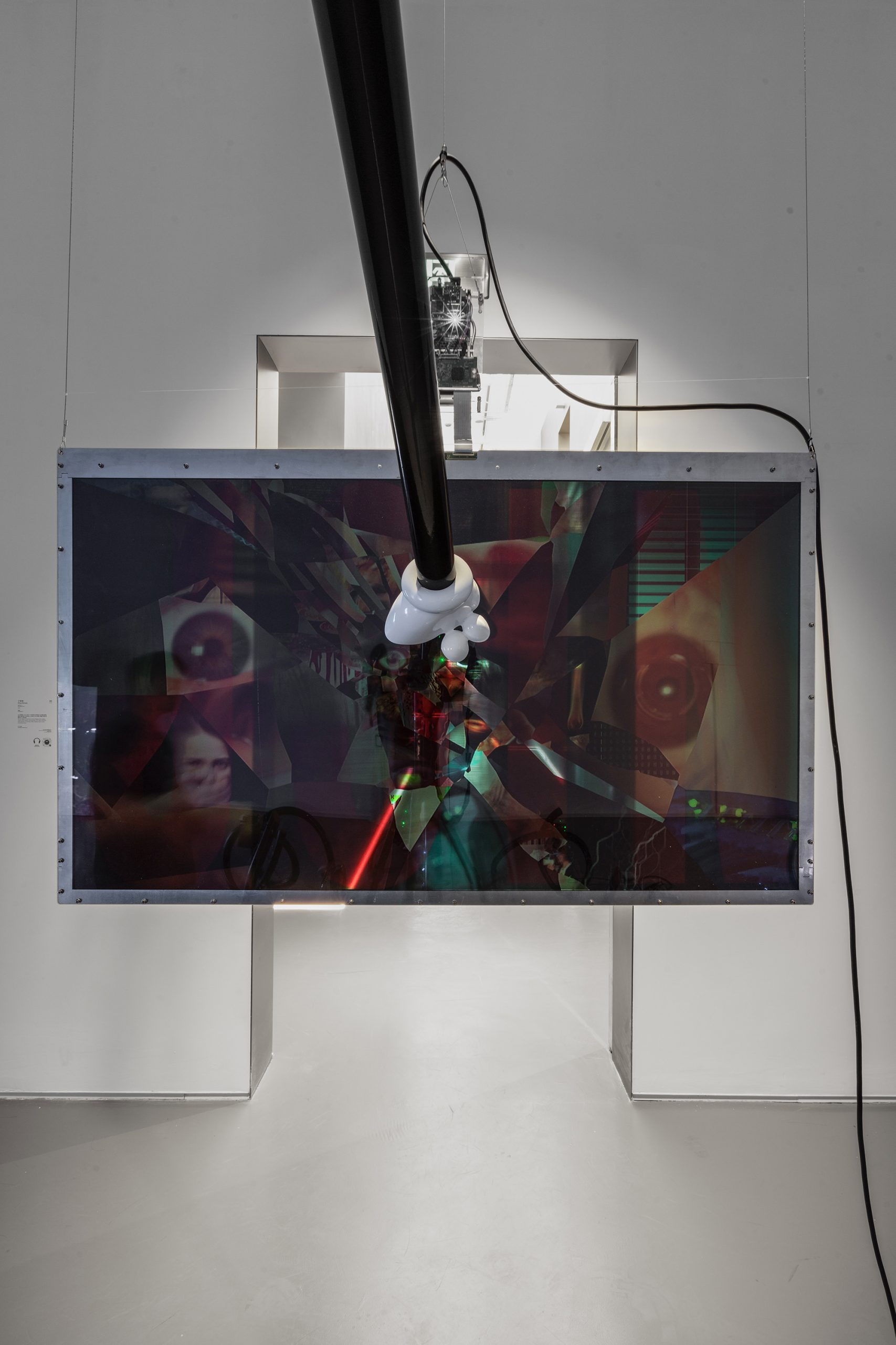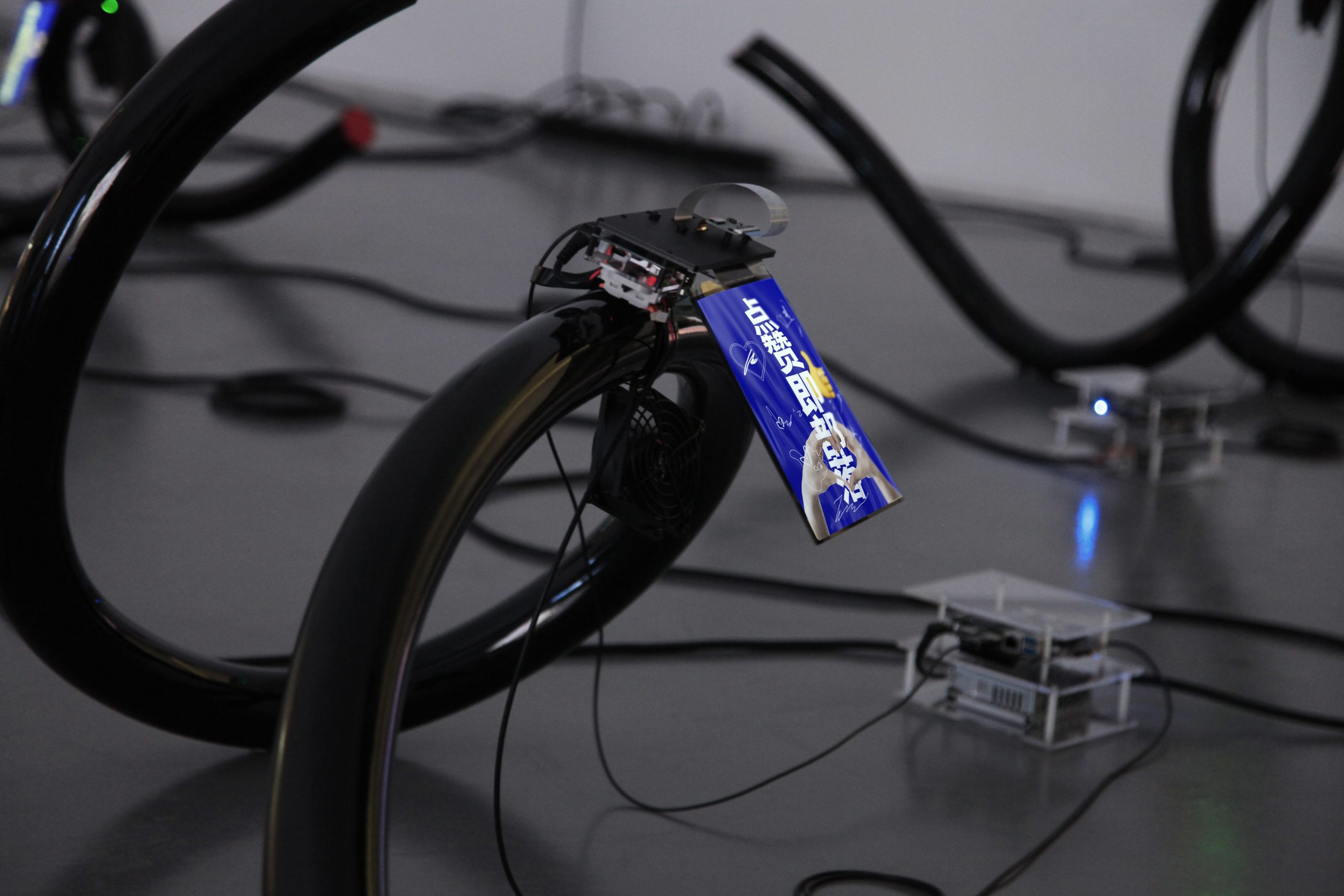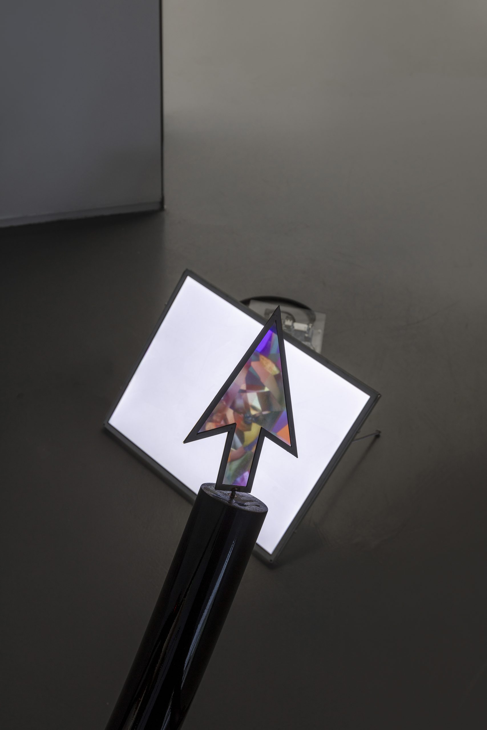 此件作品以1754年由本杰明·富兰克林发表的政治漫画Join, or Die作为挪用蓝本,艺术家呈现了八段被切断的光标-路径-身体,每段都指向一种现代人面对屏幕漩涡/技术政治的被“殖民”困境。装置的两端分别是被滑屏的降维小手穿刺的半透明屏幕和附有偏振膜的光标箭头,模糊且隐秘的呈现着屏幕凝视者的绚烂欲望与分裂鬼魅的自画像。
